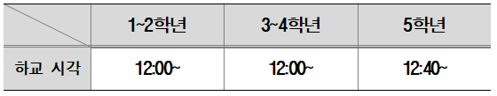 <학년별 하교시간>