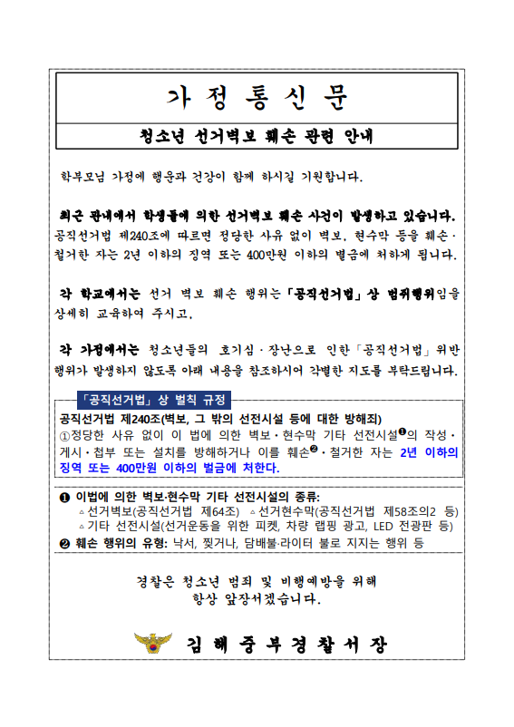 청소년 선거벽보 훼손 관련 안내드립니다.